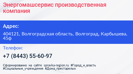 Энергомашсервис, производственная компания по адресу 404121, Волгоградская область, Волгоград, Карбышева, 45ф в дальнейшем Организация, размещена в следующих категориях: