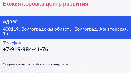 Божья коровка, центр развития по адресу 400119, Волгоградская область, Волгоград, Авиаторская, 1а в дальнейшем Организация, размещена в следующих категориях: