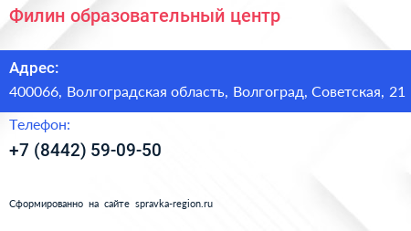 Филин, образовательный центр по адресу 400066, Волгоградская область, Волгоград, Советская, 21 в дальнейшем Организация, размещена в следующих категориях: