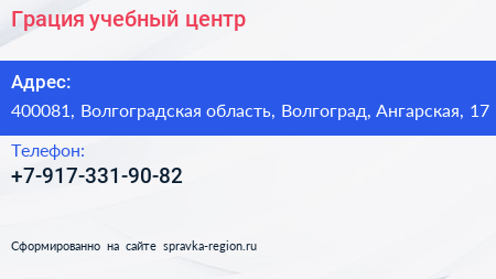 Грация, учебный центр по адресу 400081, Волгоградская область, Волгоград, Ангарская, 17 в дальнейшем Организация, размещена в следующих категориях: