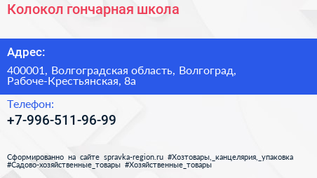 Колокол, гончарная школа по адресу 400001, Волгоградская область, Волгоград, Рабоче-Крестьянская, 8а в дальнейшем Организация, размещена в следующих категориях: