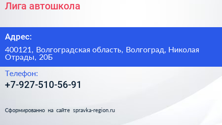 Лига, автошкола по адресу 400121, Волгоградская область, Волгоград, Николая Отрады, 20Б в дальнейшем Организация, размещена в следующих категориях: