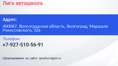 Лига, автошкола по адресу 400087, Волгоградская область, Волгоград, Маршала Рокоссовского, 32а в дальнейшем Организация, размещена в следующих категориях: