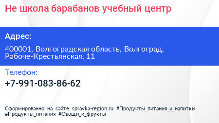 Не школа барабанов, учебный центр по адресу 400001, Волгоградская область, Волгоград, Рабоче-Крестьянская, 11 в дальнейшем Организация, размещена в следующих категориях:
