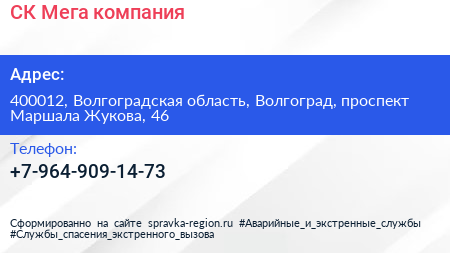 СК Мега, компания по адресу 400012, Волгоградская область, Волгоград, проспект Маршала Жукова, 46 в дальнейшем Организация, размещена в следующих категориях: