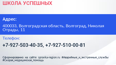 ШКОЛА УСПЕШНЫХ по адресу 400033, Волгоградская область, Волгоград, Николая Отрады, 11 в дальнейшем Организация, размещена в следующих категориях: