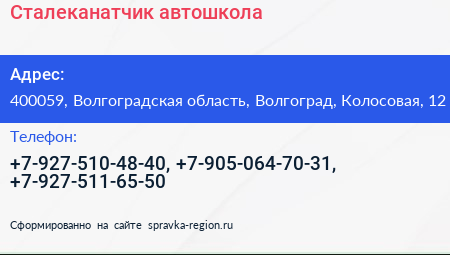 Сталеканатчик, автошкола по адресу 400059, Волгоградская область, Волгоград, Колосовая, 12 в дальнейшем Организация, размещена в следующих категориях: