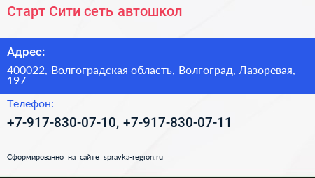 Старт Сити, сеть автошкол по адресу 400022, Волгоградская область, Волгоград, Лазоревая, 197 в дальнейшем Организация, размещена в следующих категориях: