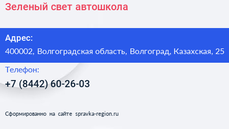 Зеленый свет, автошкола по адресу 400002, Волгоградская область, Волгоград, Казахская, 25 в дальнейшем Организация, размещена в следующих категориях: