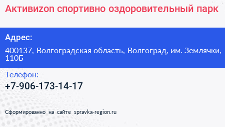Активиzon, спортивно-оздоровительный парк по адресу 400137, Волгоградская область, Волгоград, им. Землячки, 110Б в дальнейшем Организация, размещена в следующих категориях: