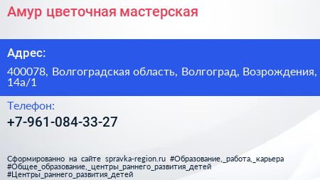 Амур, цветочная мастерская по адресу 400078, Волгоградская область, Волгоград, Возрождения, 14а/1 в дальнейшем Организация, размещена в следующих категориях: