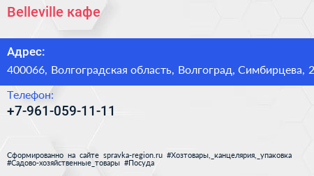 Belleville, кафе по адресу 400066, Волгоградская область, Волгоград, Симбирцева, 2 в дальнейшем Организация, размещена в следующих категориях: