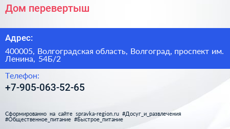 Дом перевертыш по адресу 400005, Волгоградская область, Волгоград, проспект им. Ленина, 54Б/2 в дальнейшем Организация, размещена в следующих категориях: