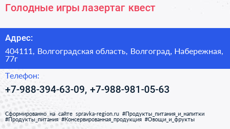 Голодные игры, лазертаг-квест по адресу 404111, Волгоградская область, Волгоград, Набережная, 77г в дальнейшем Организация, размещена в следующих категориях: