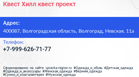 Квест-Хилл, квест-проект по адресу 400087, Волгоградская область, Волгоград, Невская, 11а в дальнейшем Организация, размещена в следующих категориях: