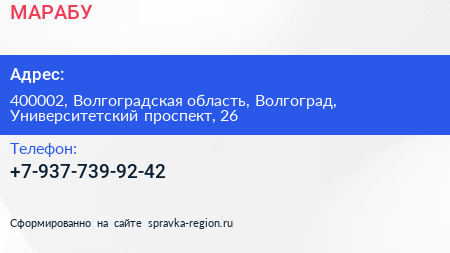 МАРАБУ по адресу 400002, Волгоградская область, Волгоград, Университетский проспект, 26 в дальнейшем Организация, размещена в следующих категориях: