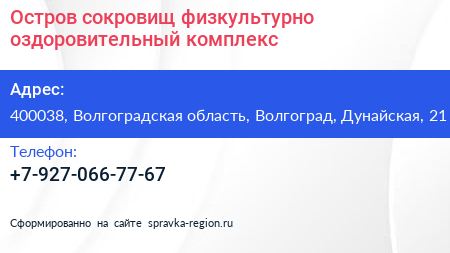 Остров сокровищ, физкультурно-оздоровительный комплекс по адресу 400038, Волгоградская область, Волгоград, Дунайская, 21 в дальнейшем Организация, размещена в следующих категориях: