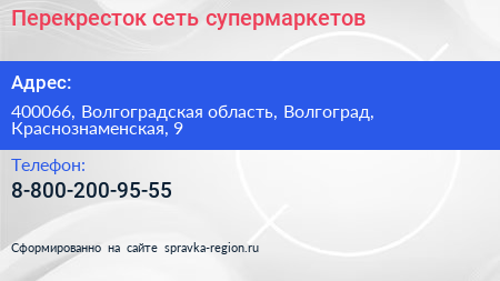 Перекресток, сеть супермаркетов по адресу 400066, Волгоградская область, Волгоград, Краснознаменская, 9 в дальнейшем Организация, размещена в следующих категориях: