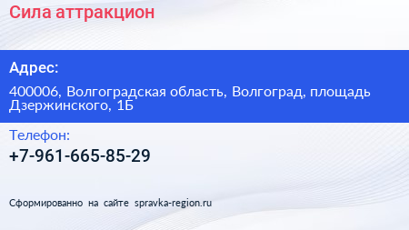 Сила, аттракцион по адресу 400006, Волгоградская область, Волгоград, площадь Дзержинского, 1Б в дальнейшем Организация, размещена в следующих категориях: