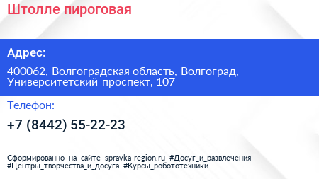 Штолле, пироговая по адресу 400062, Волгоградская область, Волгоград, Университетский проспект, 107 в дальнейшем Организация, размещена в следующих категориях: