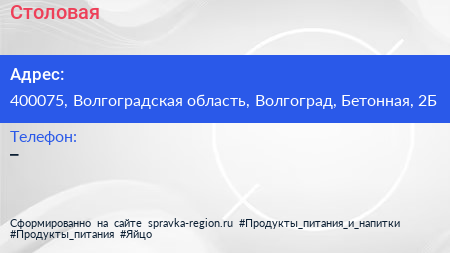 Столовая по адресу 400075, Волгоградская область, Волгоград, Бетонная, 2Б в дальнейшем Организация, размещена в следующих категориях: