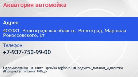 Акватория, автомойка по адресу 400081, Волгоградская область, Волгоград, Маршала Рокоссовского, 1т в дальнейшем Организация, размещена в следующих категориях: