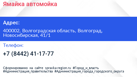 Ямайка, автомойка по адресу 400002, Волгоградская область, Волгоград, Новосибирская, 41/1 в дальнейшем Организация, размещена в следующих категориях: