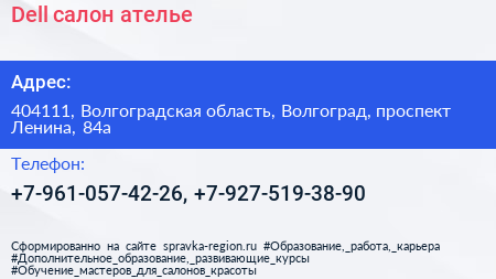 Dell, салон-ателье по адресу 404111, Волгоградская область, Волгоград, проспект Ленина, 84а в дальнейшем Организация, размещена в следующих категориях: