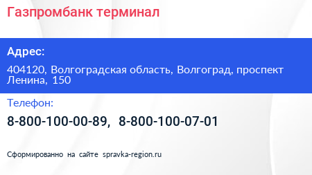 Газпромбанк, терминал по адресу 404120, Волгоградская область, Волгоград, проспект Ленина, 150 в дальнейшем Организация, размещена в следующих категориях: