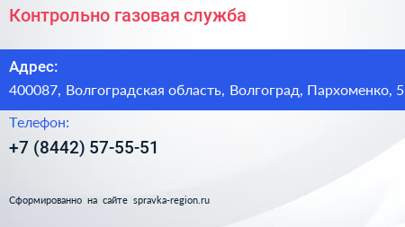 Контрольно-газовая служба по адресу 400087, Волгоградская область, Волгоград, Пархоменко, 5 в дальнейшем Организация, размещена в следующих категориях: