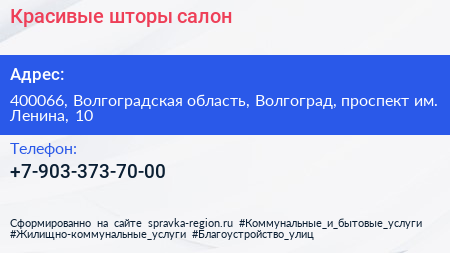 Красивые шторы, салон по адресу 400066, Волгоградская область, Волгоград, проспект им. Ленина, 10 в дальнейшем Организация, размещена в следующих категориях:
