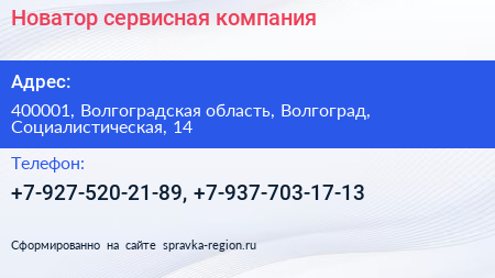 Новатор, сервисная компания по адресу 400001, Волгоградская область, Волгоград, Социалистическая, 14 в дальнейшем Организация, размещена в следующих категориях: