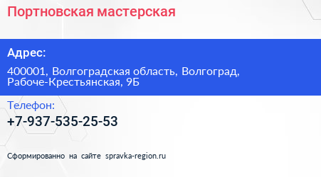 Портновская мастерская по адресу 400001, Волгоградская область, Волгоград, Рабоче-Крестьянская, 9Б в дальнейшем Организация, размещена в следующих категориях: