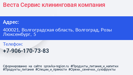 Веста-Сервис, клининговая компания по адресу 400021, Волгоградская область, Волгоград, Розы Люксембург, 5 в дальнейшем Организация, размещена в следующих категориях: