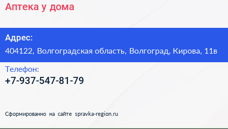 Аптека у дома по адресу 404122, Волгоградская область, Волгоград, Кирова, 11в в дальнейшем Организация, размещена в следующих категориях: