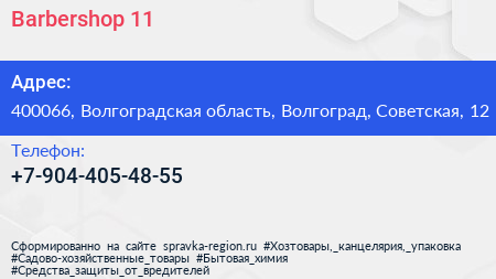 Barbershop 11 по адресу 400066, Волгоградская область, Волгоград, Советская, 12 в дальнейшем Организация, размещена в следующих категориях: