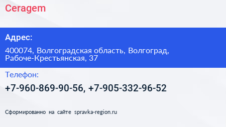Ceragem по адресу 400074, Волгоградская область, Волгоград, Рабоче-Крестьянская, 37 в дальнейшем Организация, размещена в следующих категориях: