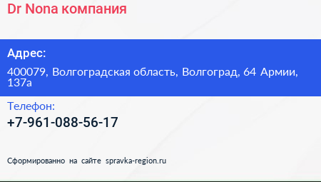 Dr.Nona, компания по адресу 400079, Волгоградская область, Волгоград, 64 Армии, 137а в дальнейшем Организация, размещена в следующих категориях: