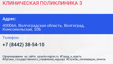 КЛИНИЧЕСКАЯ ПОЛИКЛИНИКА № 3 по адресу 400066, Волгоградская область, Волгоград, Комсомольская, 10Б в дальнейшем Организация, размещена в следующих категориях: