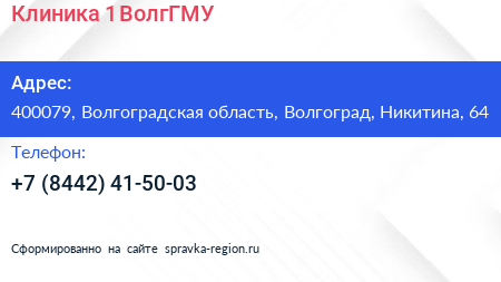 Клиника №1, ВолгГМУ по адресу 400079, Волгоградская область, Волгоград, Никитина, 64 в дальнейшем Организация, размещена в следующих категориях: