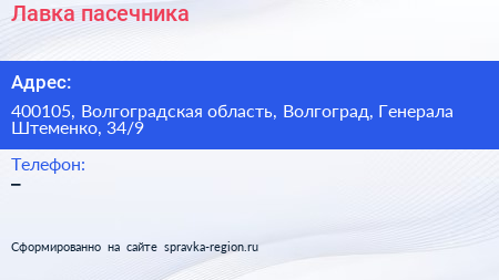 Лавка пасечника по адресу 400105, Волгоградская область, Волгоград, Генерала Штеменко, 34/9 в дальнейшем Организация, размещена в следующих категориях: