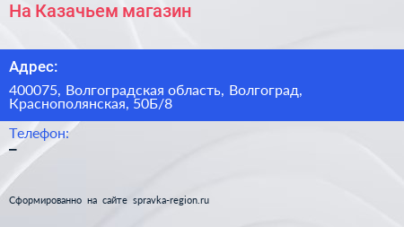 На Казачьем, магазин по адресу 400075, Волгоградская область, Волгоград, Краснополянская, 50Б/8 в дальнейшем Организация, размещена в следующих категориях: