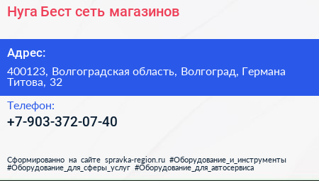 Нуга Бест, сеть магазинов по адресу 400123, Волгоградская область, Волгоград, Германа Титова, 32 в дальнейшем Организация, размещена в следующих категориях: