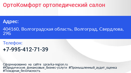 ОртоКомфорт, ортопедический салон по адресу 404160, Волгоградская область, Волгоград, Свердлова, 29Б в дальнейшем Организация, размещена в следующих категориях: