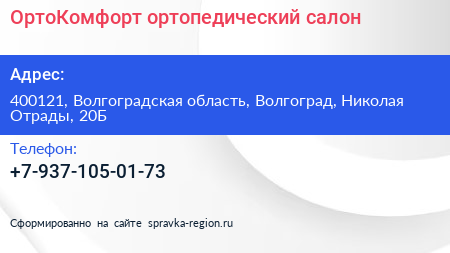 ОртоКомфорт, ортопедический салон по адресу 400121, Волгоградская область, Волгоград, Николая Отрады, 20Б в дальнейшем Организация, размещена в следующих категориях: