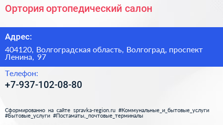 Ортория, ортопедический салон по адресу 404120, Волгоградская область, Волгоград, проспект Ленина, 97 в дальнейшем Организация, размещена в следующих категориях: