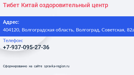 Тибет-Китай, оздоровительный центр по адресу 404120, Волгоградская область, Волгоград, Советская, 82а в дальнейшем Организация, размещена в следующих категориях: