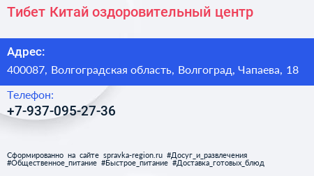 Тибет-Китай, оздоровительный центр по адресу 400087, Волгоградская область, Волгоград, Чапаева, 18 в дальнейшем Организация, размещена в следующих категориях: