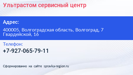 Ультрастом, сервисный центр по адресу 400005, Волгоградская область, Волгоград, 7 Гвардейской, 16 в дальнейшем Организация, размещена в следующих категориях:
