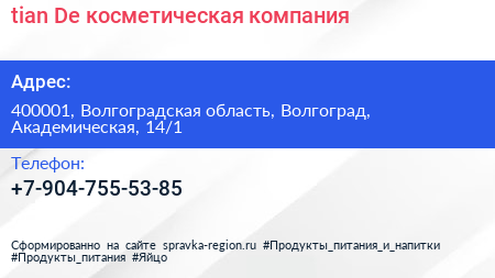 tian De, косметическая компания по адресу 400001, Волгоградская область, Волгоград, Академическая, 14/1 в дальнейшем Организация, размещена в следующих категориях: